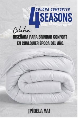 Diseñado bajo el concepto 4 Seasons, este conforter tiene el peso ideal para acompañarte durante todo el año:
