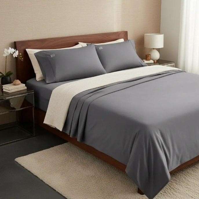 Juego de Sabanas 144 hilos Hotelero Algodon Gris Oscuro